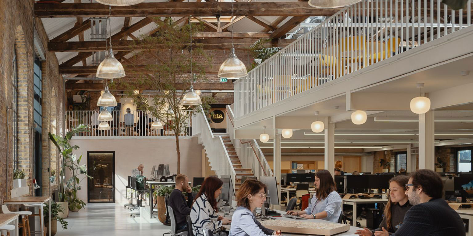 Henly Projects Ltd recently completed an acoustic spray package for HTA Architects at their new HQ in Hackney. The project transformed a 19th-century heritage warehouse into their new studio that has varied character areas that meet their modern workplace’s needs. The acoustic spray that was applied to the soffits provides excellent acoustic reverberation control to the large open plan area, which also included double height spaces. The project looks fantastic and showcases HTA’s flare for design and ability to design modern working spaces.